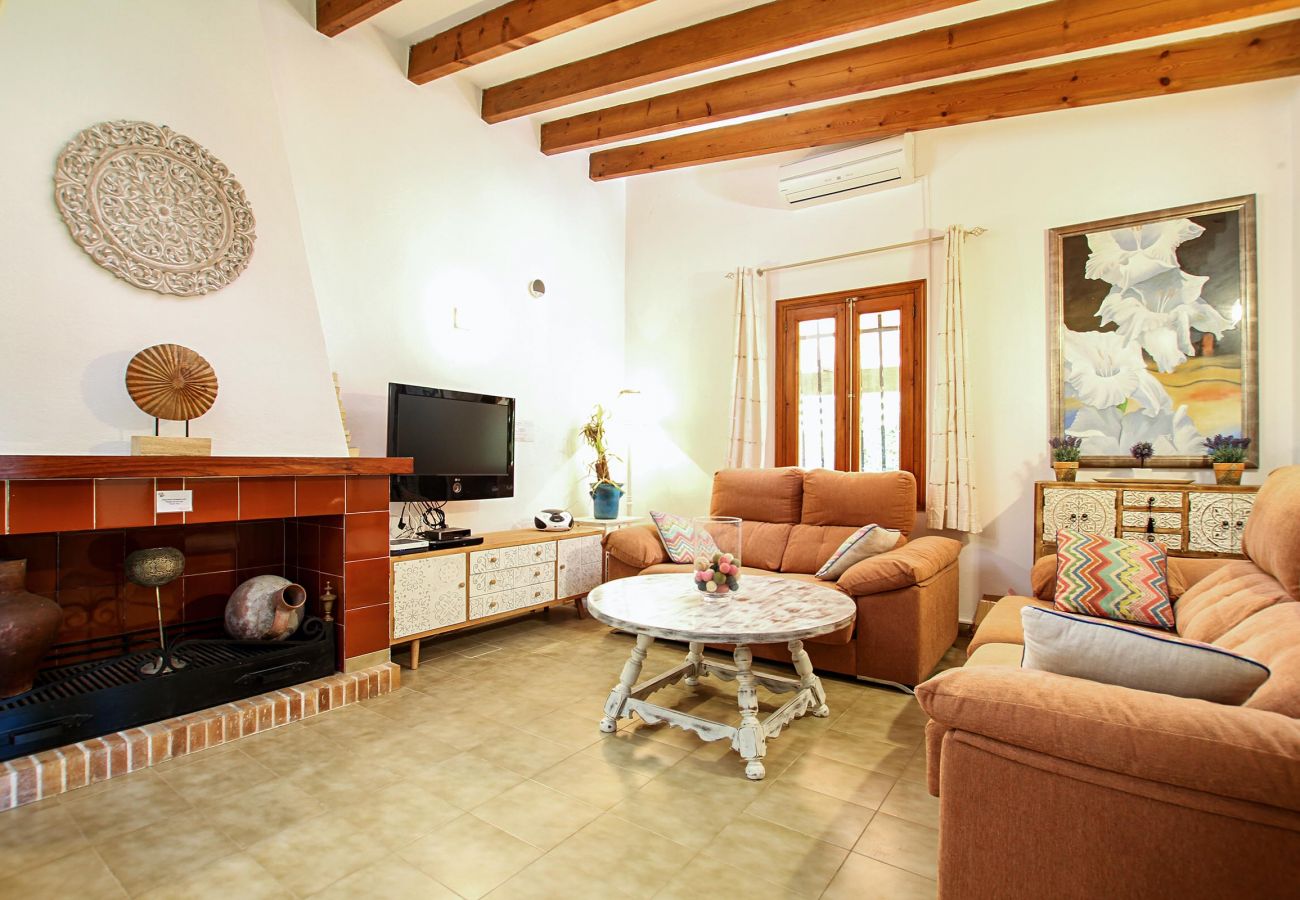 La entrada de Villa Barraca, a través de la verja eléctrica, nos lleva a la zona de parking, con espacio para aparcar 2 vehículos. El acceso a la puerta principal es a través de terraza cubierta y desde ella se accede al salón-comedor. La sala de estar dispone de un amplio espacio para toda la familia, con cómodos asientos alrededor de la chimenea (sólo de uso decorativo) y TV de pantalla plana. También hay una mesa de comedor y sillas a un lado de la estancia, y acceso directo a la terraza cubierta y al área de la piscina. Los techos con vigas y los detalles en hierro forjado de las ventanas le dan a esta estancia un bonito toque rústico. La cocina se ubica adyacente a la sala de estar y dispone de mucho espacio de almacenamiento y una pequeña barra de desayuno, perfecta para disfrutar de un croissant caliente por la mañana.