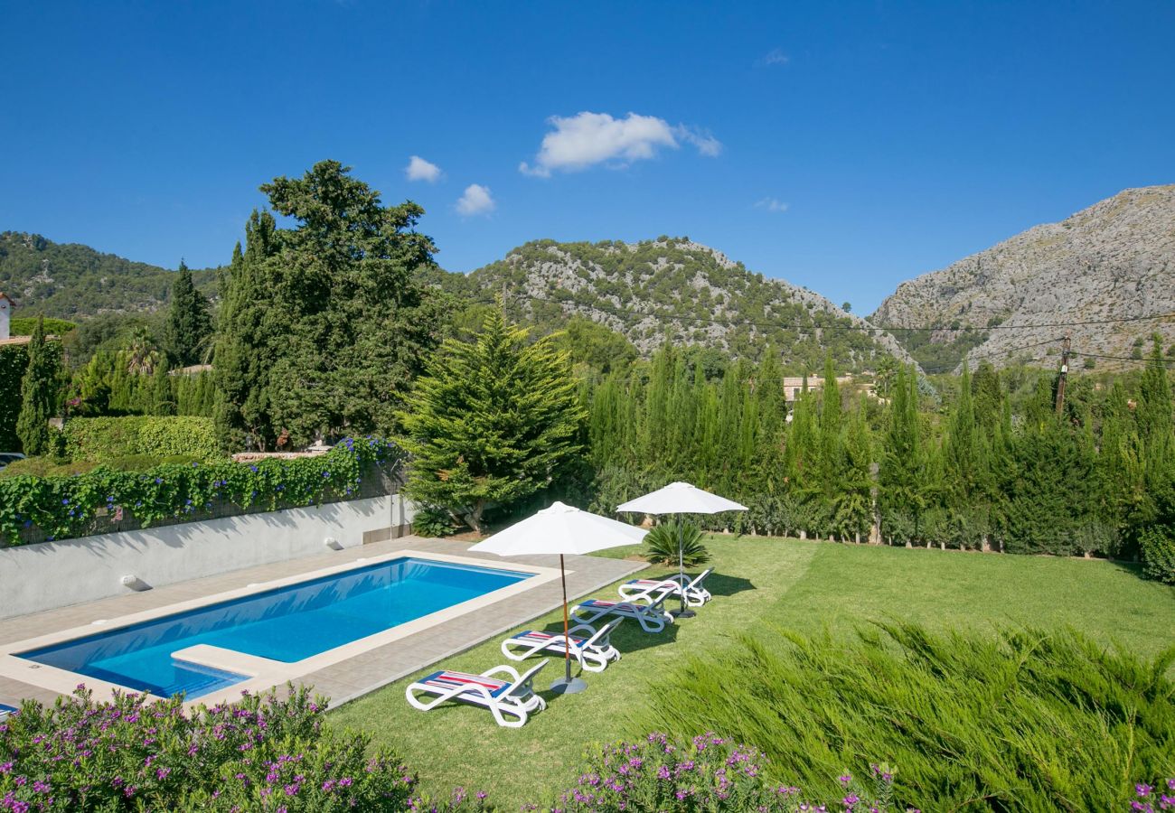 Large gates open onto a private driveway for your hire car, adjacent to the exterior dining area. Villa Llobiner is semi-detached, back to back with the neighbouring house. The swimming pool and garden are to the front, facing the mountains, still having a good degree of privacy.
