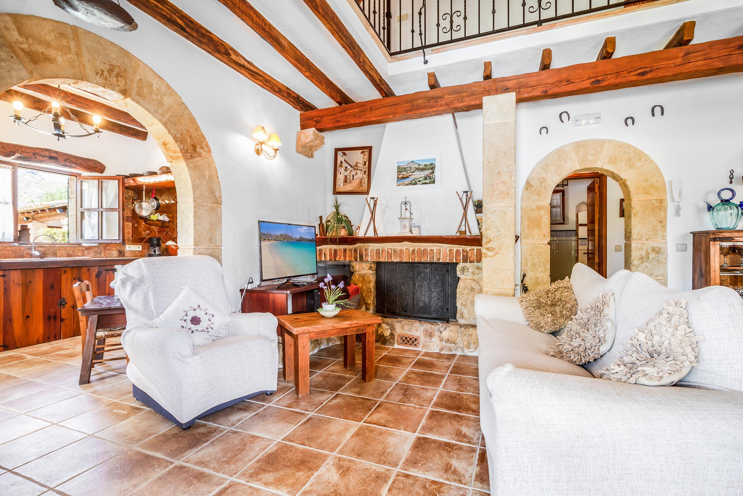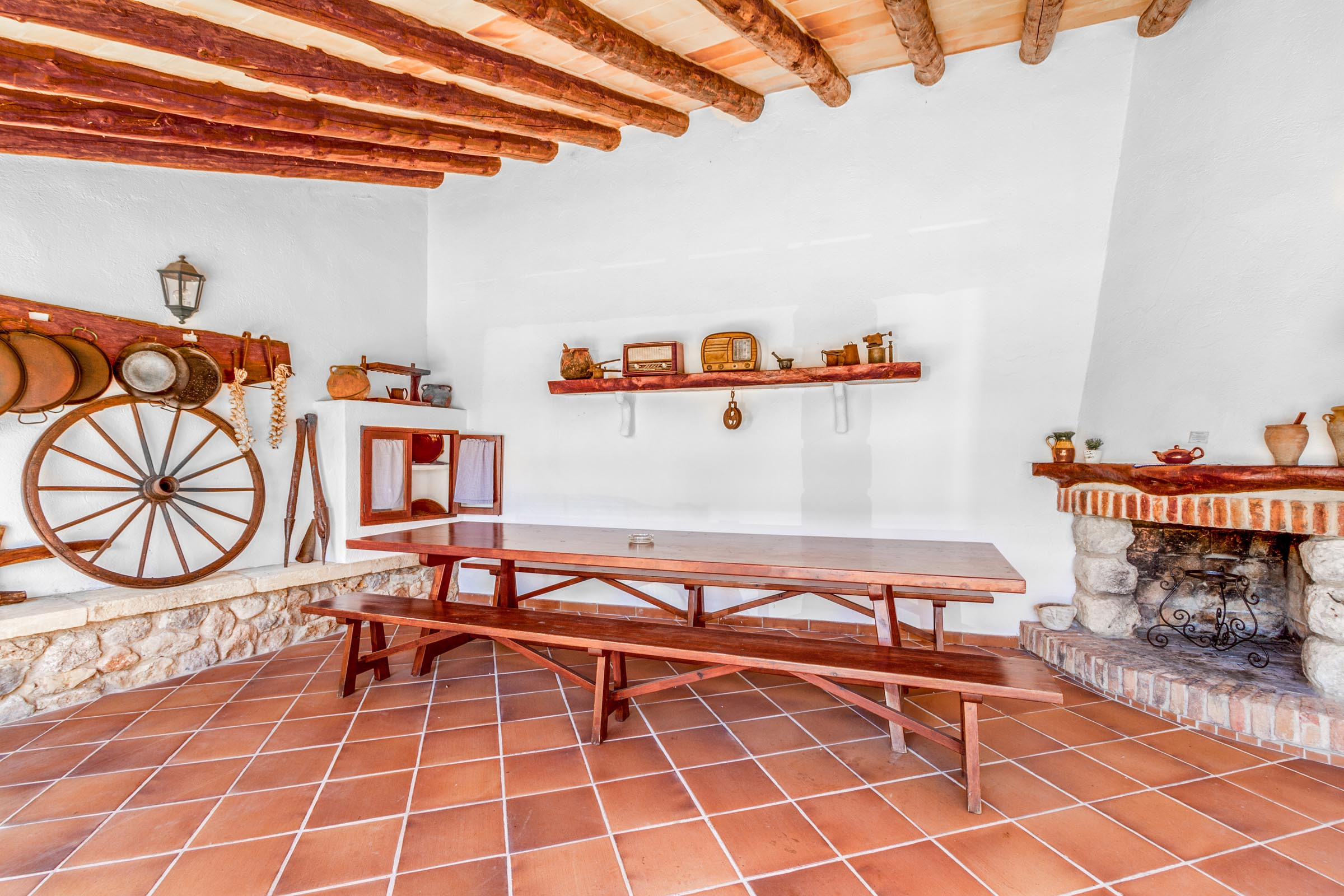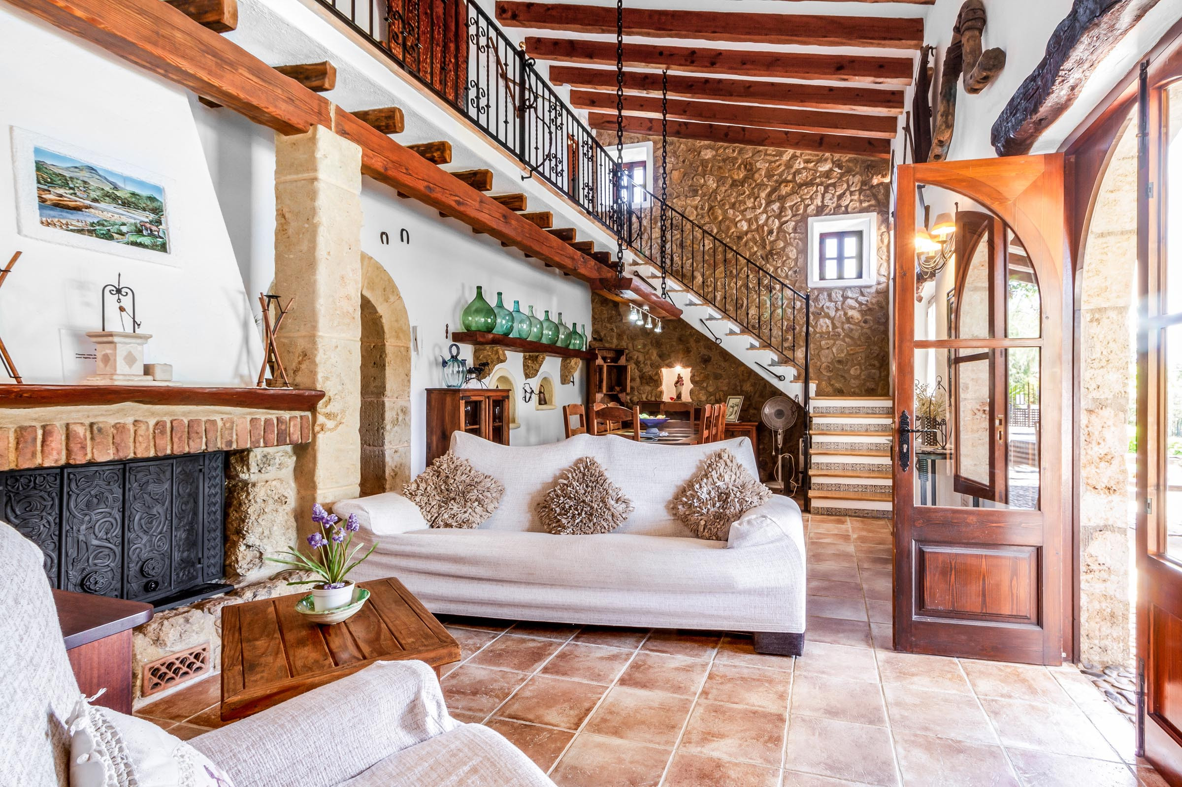 Sergi is a lovely Mallorcan villa set in mature gardens. From the main entrance there is a large characterful open plan lounge and dining area including a decorative fireplace, comfortable seating, Satellite TV and for dining a large wooden table and chairs.