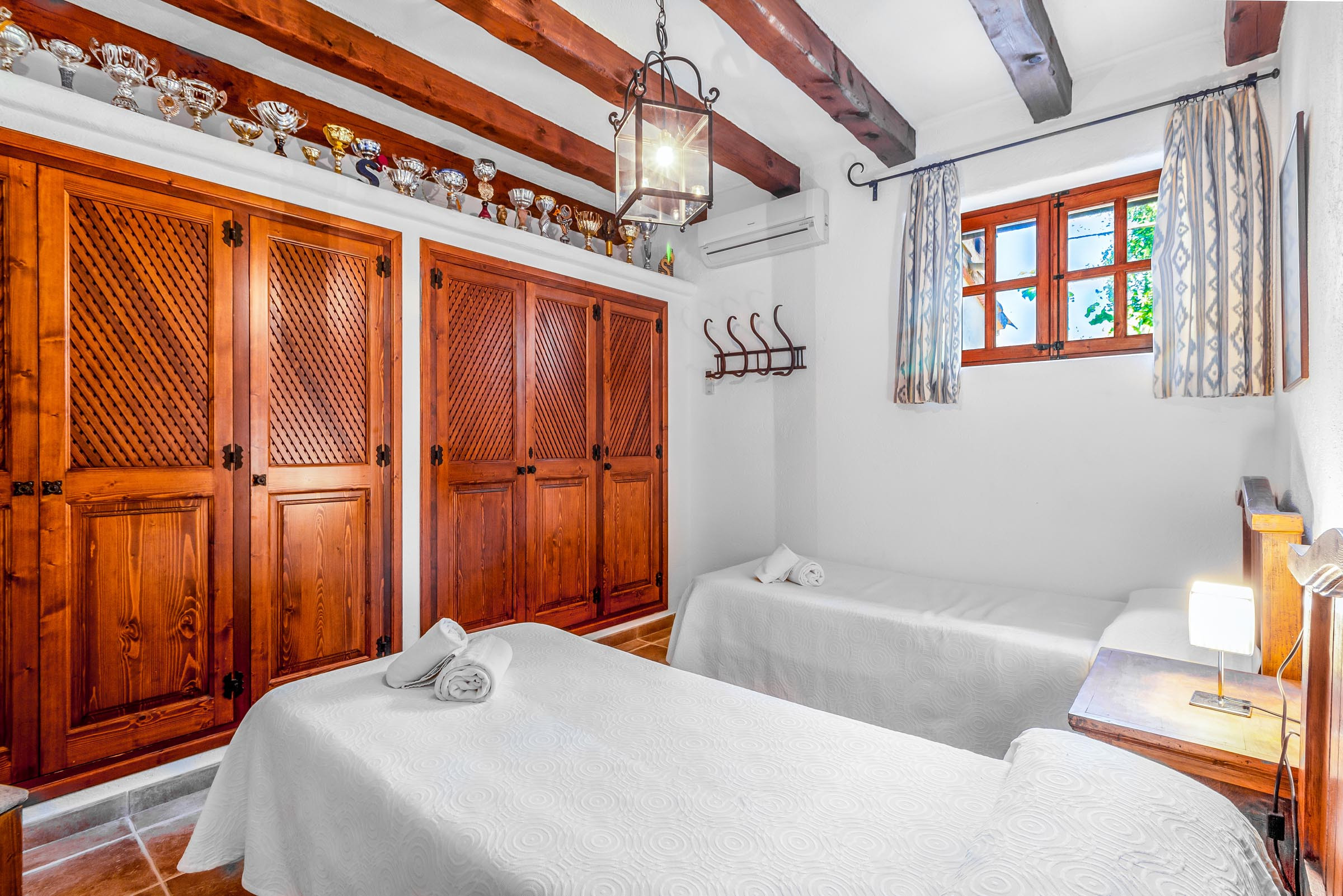 Inside, the villa looks like a traditional Majorcan home, with wooden furniture and Spanish plates on the wall. The décor is white, the floor tiles are terracotta, the linens are natural. With three bedrooms, the villa is for six people.